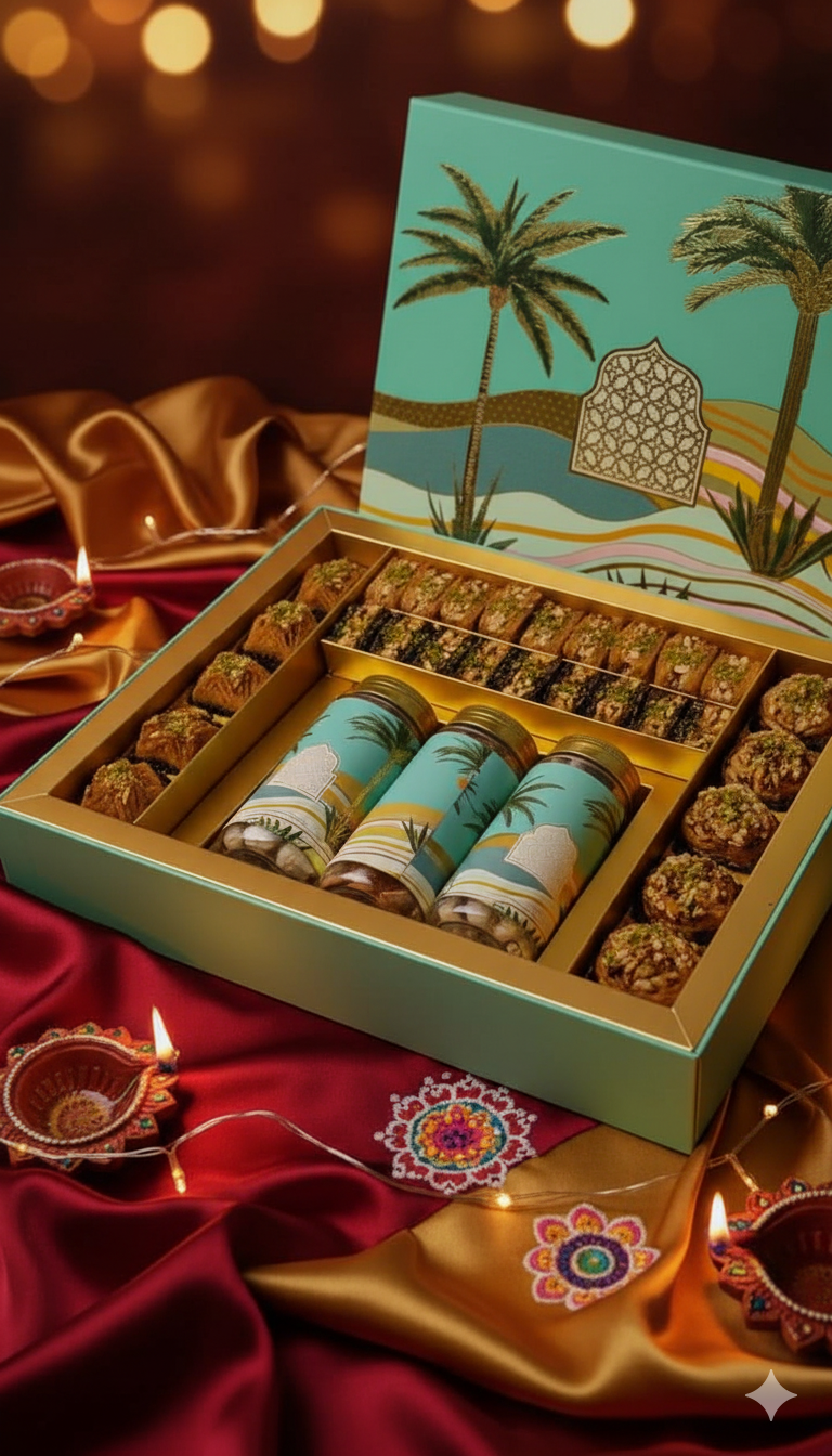 Elegantly packed with care, this box is perfect for sharing happiness with family, friends, and colleagues. Whether it’s Diwali, weddings, or corporate gifting, The Baklava Box brings a touch of luxury to every celebration.