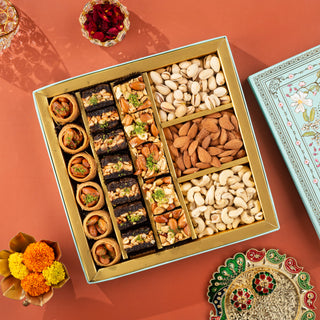 Torquise Assorted Baklava, Indain Fusion & Dryfruit Hamper Sweets Box