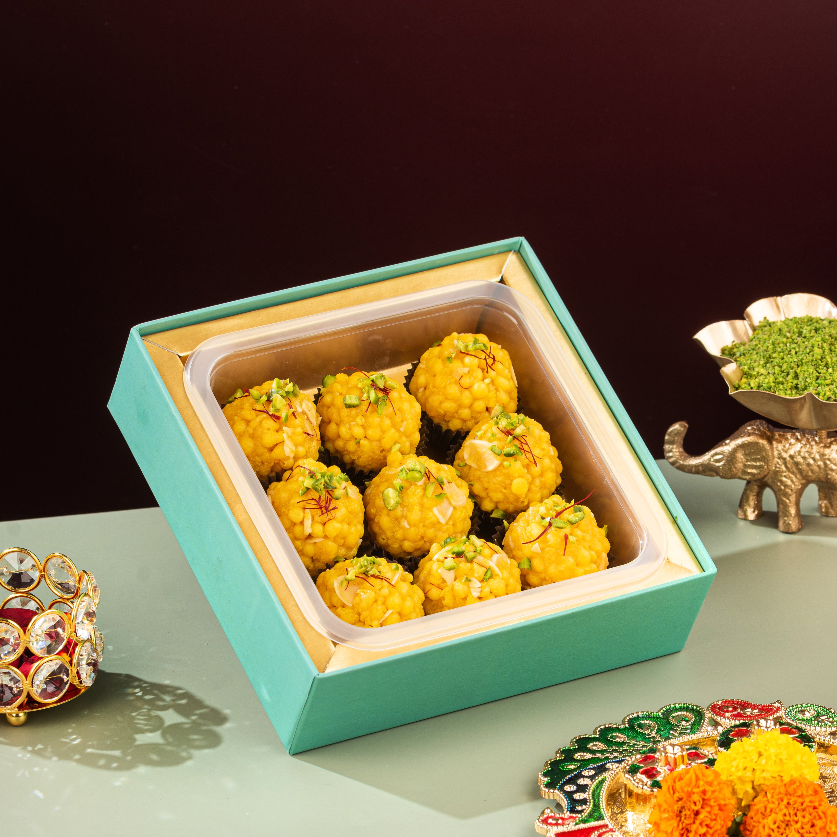 Emerald Kesar Pista Motichur Laddu Box