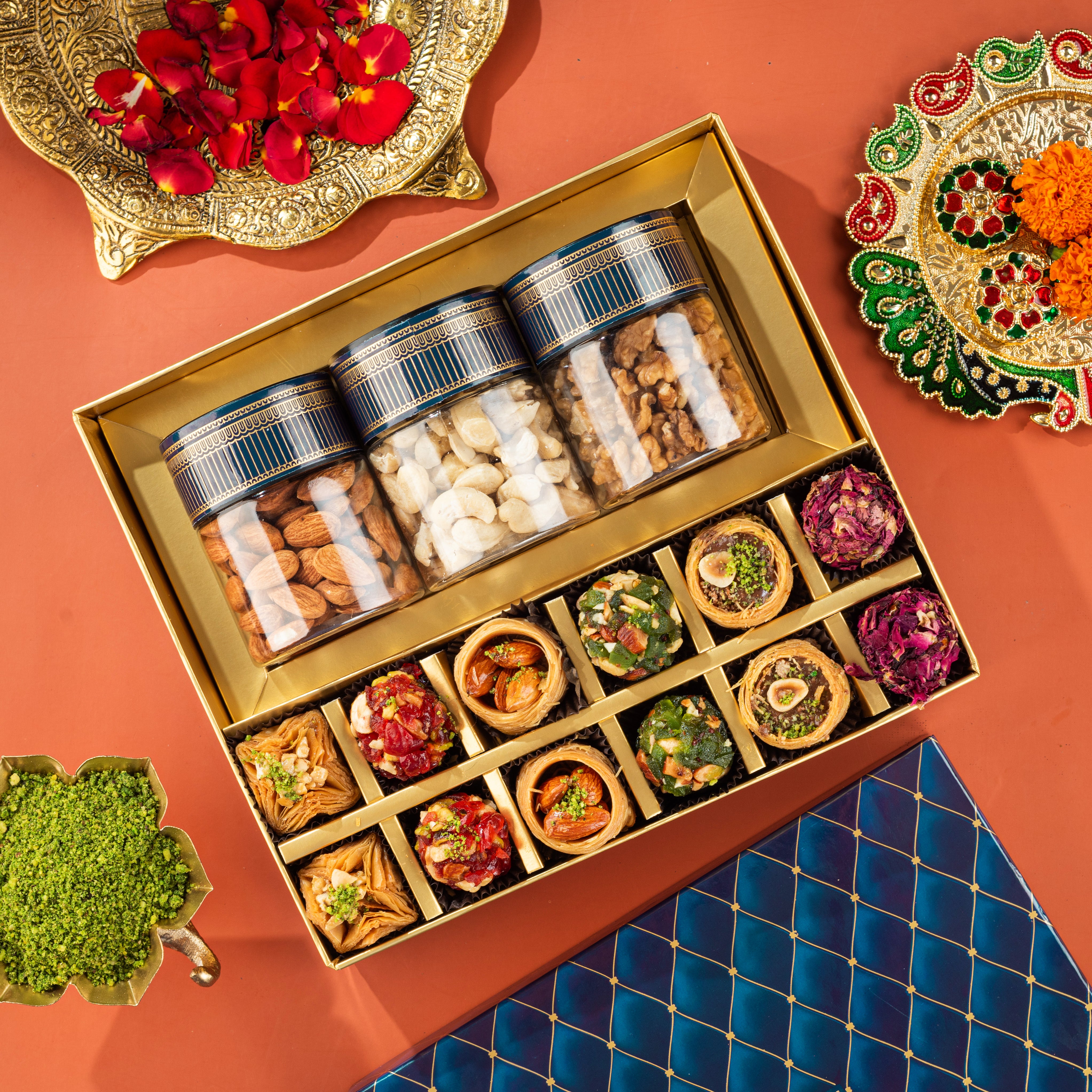 Elegantly packed with care, this box is perfect for sharing happiness with family, friends, and colleagues. Whether it’s Diwali, weddings, or corporate gifting, The Baklava Box brings a touch of luxury to every celebration.